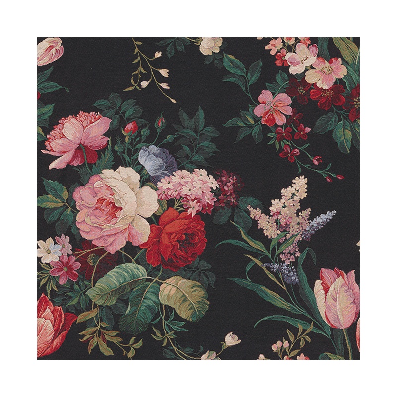 Mööblikangas Gobelään Mustal suured lilled.