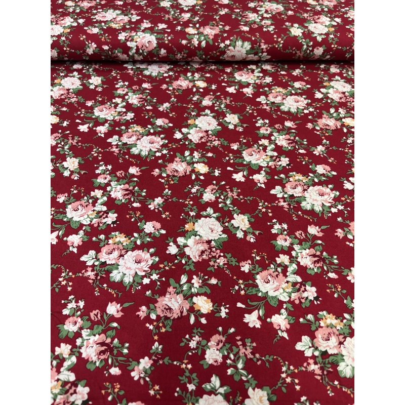 Popliin, tumepunasel lillekimbud.
