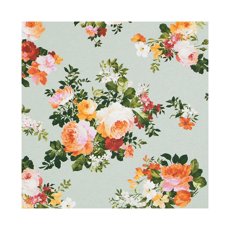 Prinditud dekoratiivkangas, rohelisel lillekimbud.