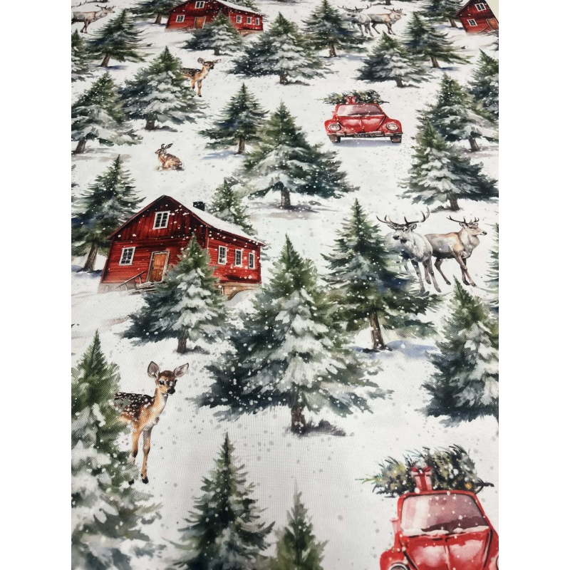 VETTHÜLGAV dekoratiivkangas Autod lumises metsas.