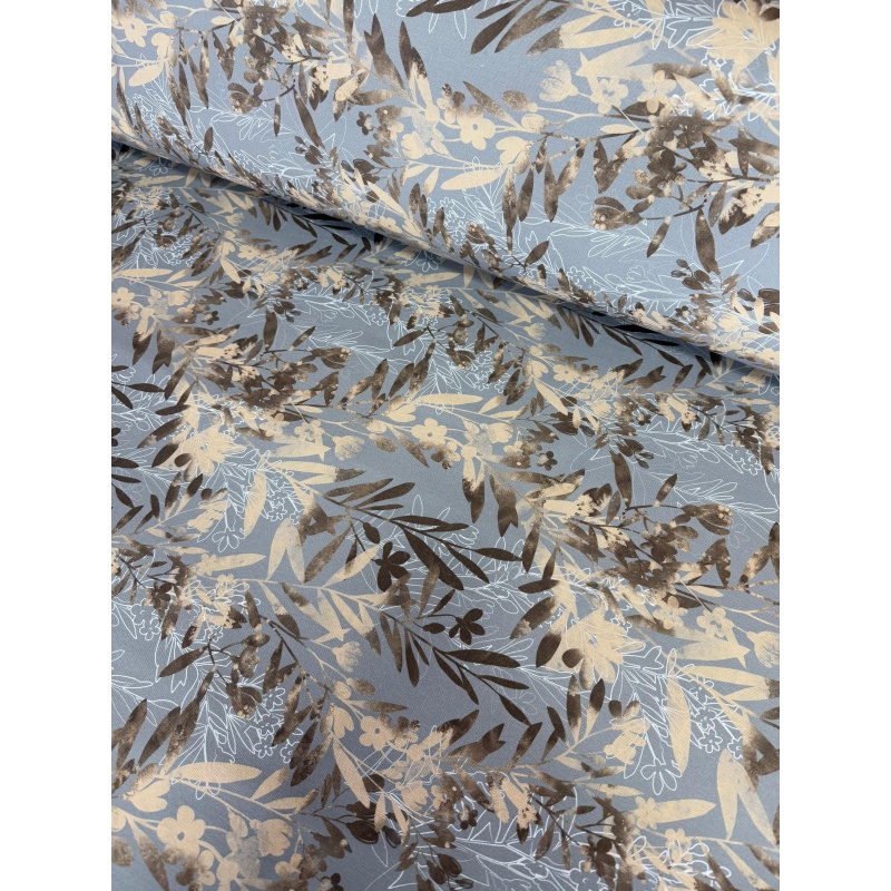 VETTHÜLGAV prinditud kangas, sinakal põhjal beešid-pruunid lehed