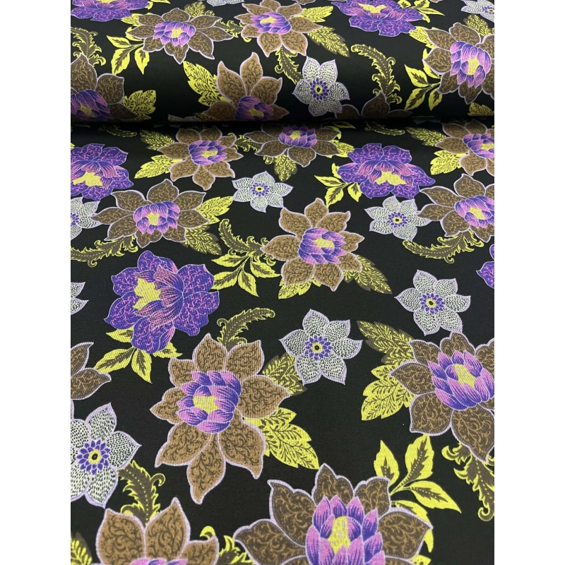 Viskoostrikotaaž Rohekad ja lillad lilled.